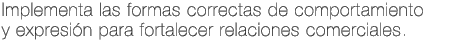 - Capacitación en técnicas de comunicación verbal y no verbal apropiadas en el mundo de los negocios.